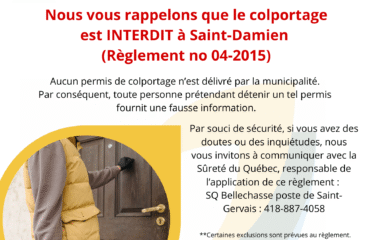 ● La Municipalité de Saint-Damien-de-Buckland pour l’aménagement du Parc des Soeurs.